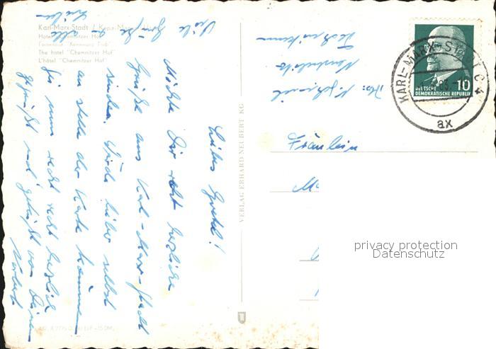 72515786 alte Postkarte Karl-Marx-Stadt Hotel Chemnitzer Hof postalisch gelaufen Erhaltung siehe scans KatCode: 11110014161000