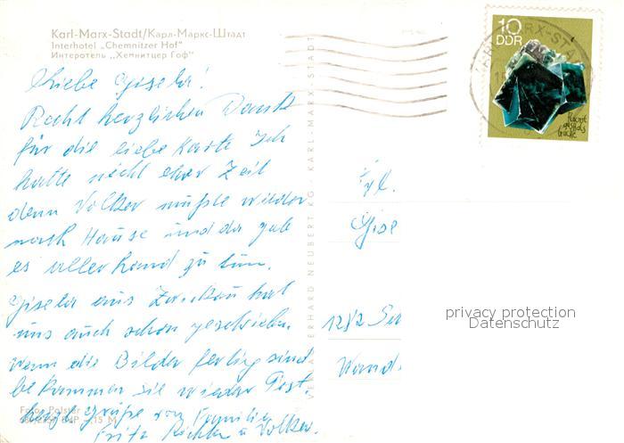 72943876 alte Postkarte Karl-Marx-Stadt Interhotel Chemnitzer Hof postalisch gelaufen Erhaltung siehe scans [KathaD81] KatCode: 11110014161000