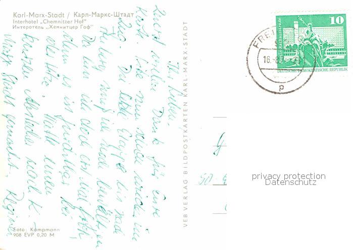 72742154 alte Postkarte Karl-Marx-Stadt Interhotel Chemnitzer Hof postalisch gelaufen Erhaltung siehe scans [LiesaD40] KatCode: 11110014161000