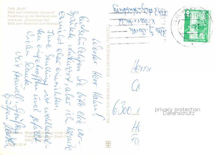72627779 alte Postkarte Karl-Marx-Stadt Interhotel Kongress Punktehaus Muehlenstr Interhotel Chemnitzer Hof Rosenhof Rathaus postalisch gelaufen Erhaltung siehe scans [WerneD78] KatCode: 11110014161000