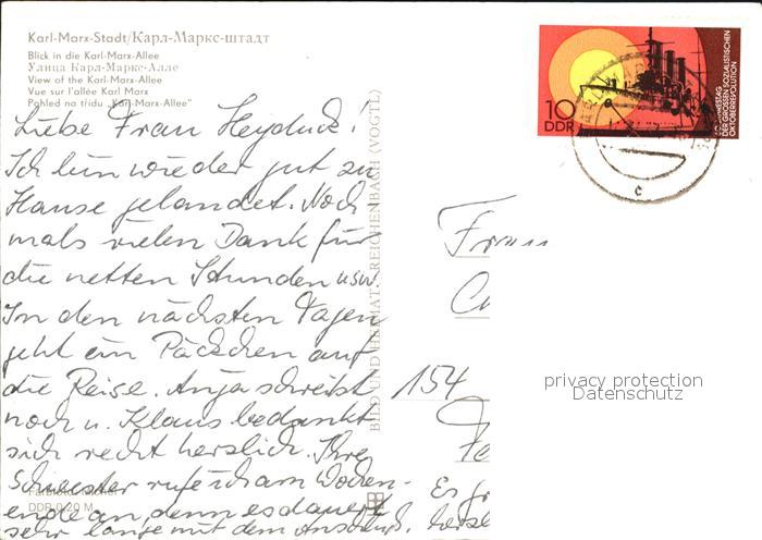 72535794 alte Postkarte Karl-Marx-Stadt Karl Marx Allee bei Nacht postalisch gelaufen Erhaltung siehe scans [WerneD78 kt117box] KatCode: 11110014161000