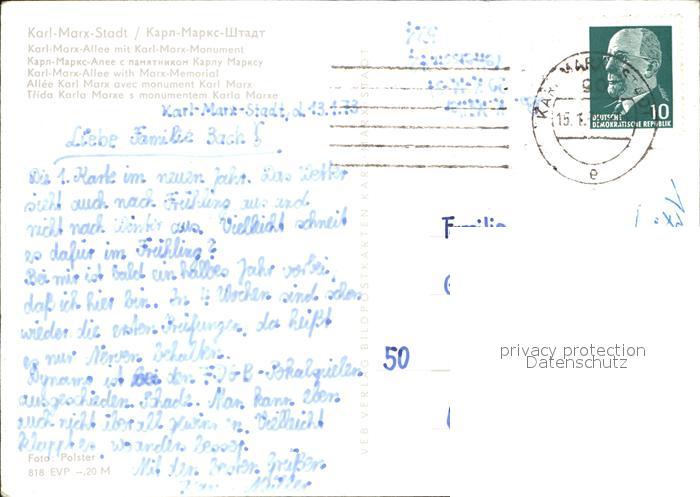 72557386 alte Postkarte Karl-Marx-Stadt Karl Marx Allee Monument postalisch gelaufen Erhaltung siehe scans [KathaD79] KatCode: 11110014161000