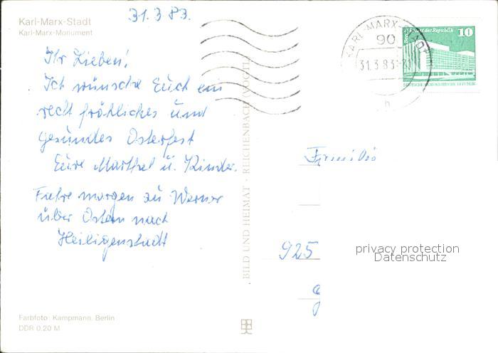 72324166 alte Postkarte Karl-Marx-Stadt Karl Marx Monument postalisch gelaufen Erhaltung siehe scans KatCode: 11110014161000
