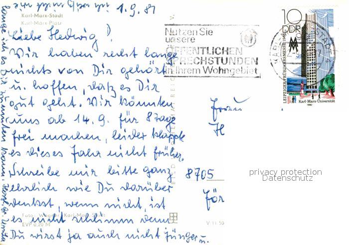 72647414 alte Postkarte Karl-Marx-Stadt Karl-Marx-Platz postalisch gelaufen Erhaltung siehe scans [LiesaD40] KatCode: 11110014161000