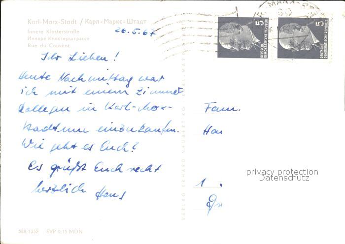 72607714 alte Postkarte Karl-Marx-Stadt Klosterstrasse postalisch gelaufen Erhaltung siehe scans [LiesaD40] KatCode: 11110014161000