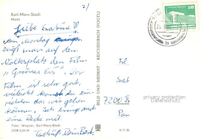73167661 alte Postkarte Karl-Marx-Stadt Markt postalisch gelaufen Erhaltung siehe scans [FriedD77] KatCode: 11110014161000