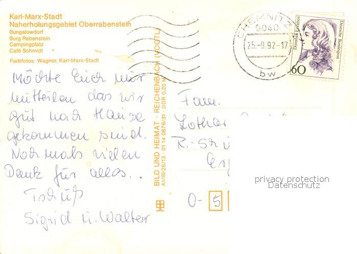 73067157 alte Postkarte Karl-Marx-Stadt Oberrabenstein Burg Rabenstein Campingplatz Cafe Schmidt postalisch gelaufen Erhaltung siehe scans [NatalD47] KatCode: 11110014161000