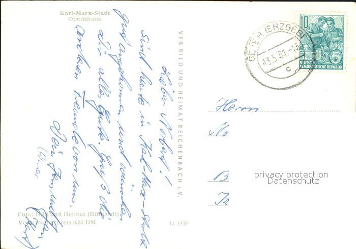 72550436 alte Postkarte Karl-Marx-Stadt Opernhaus postalisch gelaufen Erhaltung siehe scans [KathaD79] KatCode: 11110014161000