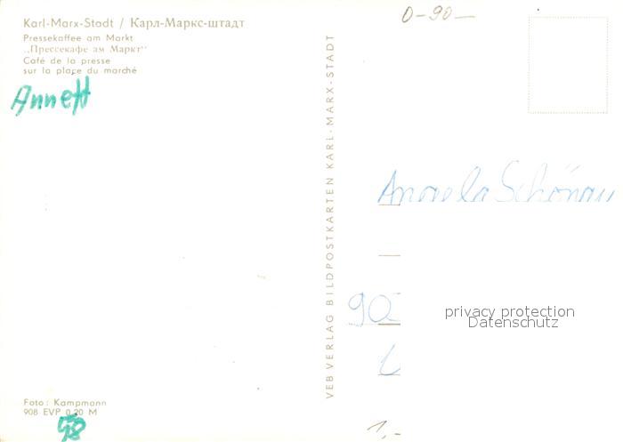 73039956 Karl-Marx-Stadt Pressekaffee am Markt postalisch nicht gelaufen Erhaltung siehe scans [WerneD78] KatCode: 11110014161000