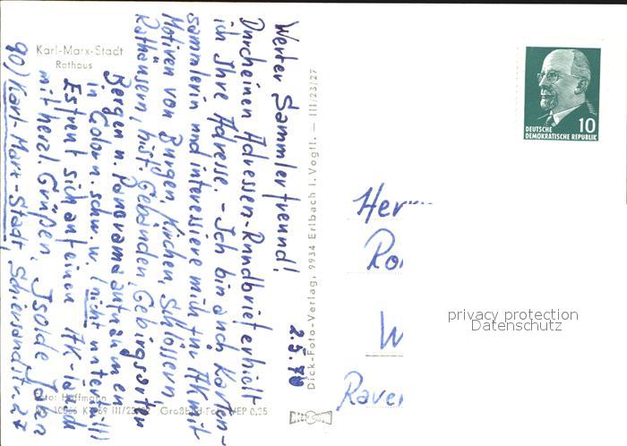 72545263 alte Postkarte Karl-Marx-Stadt Rathaus postalisch gelaufen Erhaltung siehe scans [KathaD79 kv011box] KatCode: 11110014161000