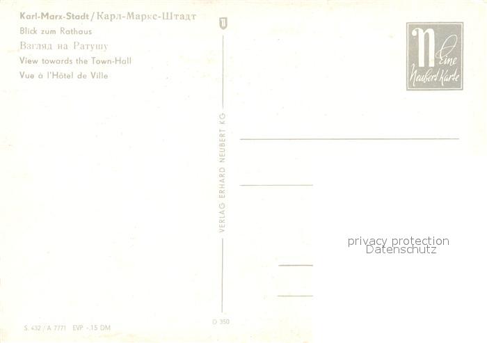 73039939 Karl-Marx-Stadt Rathaus postalisch nicht gelaufen Erhaltung siehe scans [WerneD78] KatCode: 11110014161000