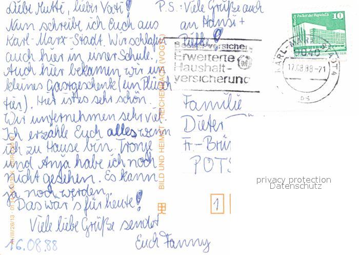 72884648 alte Postkarte Karl-Marx-Stadt Rathaus Karl Marx Denkmal Tourist Information Stadthalle postalisch gelaufen Erhaltung siehe scans [WerneD78] KatCode: 11110014161000