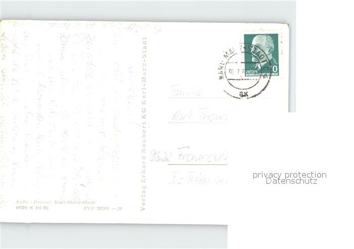 72362030 alte Postkarte Karl-Marx-Stadt Rathaus Schlossteich Theaterplatz postalisch gelaufen Erhaltung siehe scans KatCode: 11110014161000