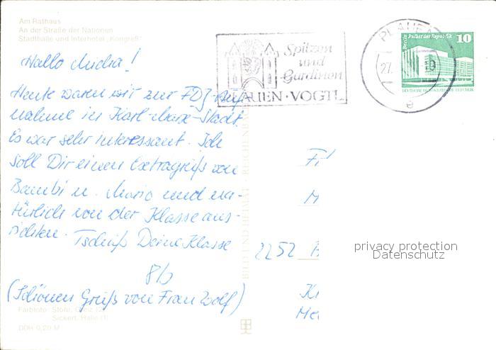 72324049 alte Postkarte Karl-Marx-Stadt Rathaus Str der Nationen Stadthalle Interhotel Kongress postalisch gelaufen Erhaltung siehe scans KatCode: 11110014161000