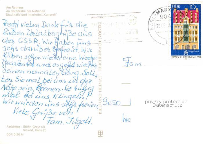 72616666 alte Postkarte Karl-Marx-Stadt Rathaus Strasse der Nationen Stadthalle Interhotel Kongress postalisch gelaufen Erhaltung siehe scans [WerneD78] KatCode: 11110014161000