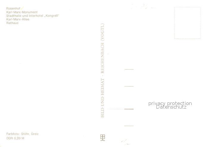 73039949 Karl-Marx-Stadt Rosenhof Karl Marx Monument Stadthalle Interhotel Karl Marx Allee Kongress Rathaus postalisch nicht gelaufen Erhaltung siehe scans [WerneD78] KatCode: 11110014161000