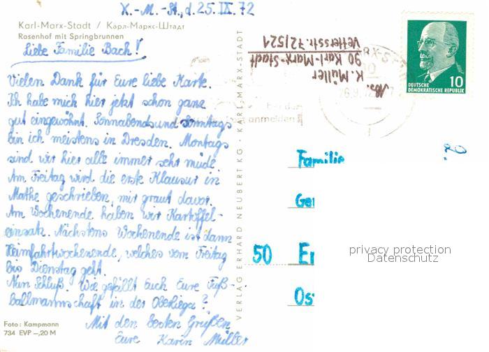 72742146 alte Postkarte Karl-Marx-Stadt Rosenhof mit Springbrunnen postalisch gelaufen Erhaltung siehe scans [LiesaD40] KatCode: 11110014161000