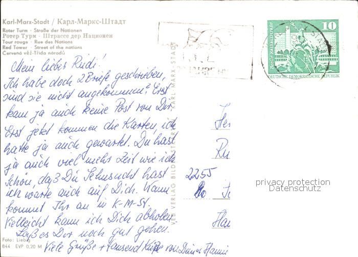 72382729 alte Postkarte Karl-Marx-Stadt Roter Turm Strasse der Nationen postalisch gelaufen Erhaltung siehe scans KatCode: 11110014161000