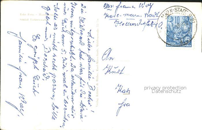 72387961 alte Postkarte Karl-Marx-Stadt Schloss Lichtenwalde postalisch gelaufen Erhaltung siehe scans KatCode: 11110014161000