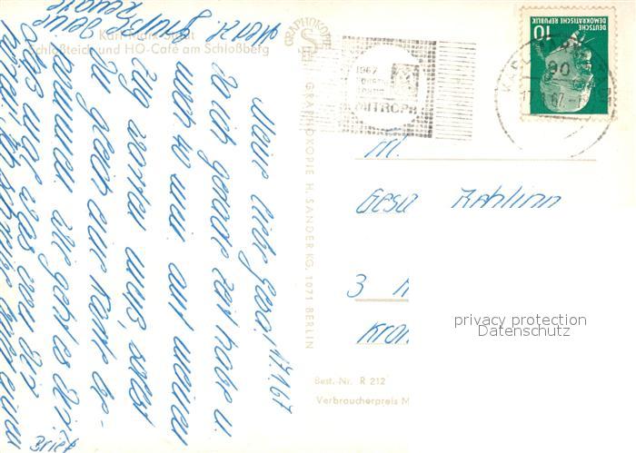 73093923 alte Postkarte Karl-Marx-Stadt Schlossteich HO Cafe Schlossberg postalisch gelaufen Erhaltung siehe scans [KathaD81] KatCode: 11110014161000