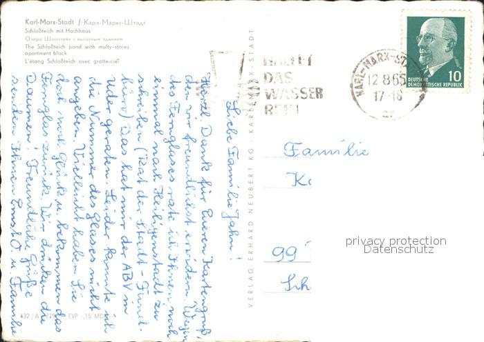 72543081 alte Postkarte Karl-Marx-Stadt Schlossteich Hochhaus postalisch gelaufen Erhaltung siehe scans [KathaD75 kv015box] KatCode: 11110014161000