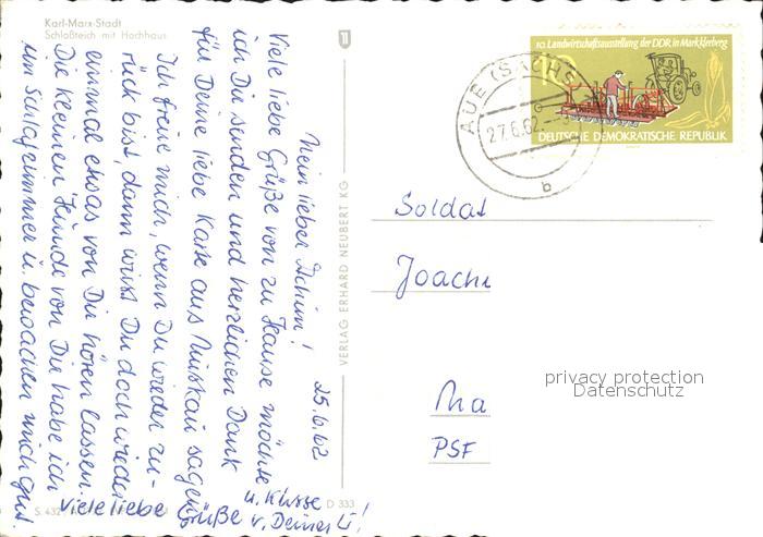 72382346 alte Postkarte Karl-Marx-Stadt Schlossteich Hochhaus postalisch gelaufen Erhaltung siehe scans KatCode: 11110014161000