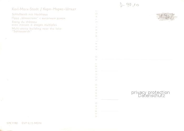 72941760 Karl-Marx-Stadt Schlossteich mit Hochhaus postalisch nicht gelaufen Erhaltung siehe scans [WerneD78] KatCode: 11110014161000