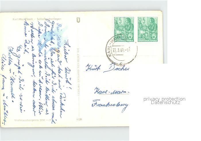 72384018 alte Postkarte Karl-Marx-Stadt Schlossteichanlagen postalisch gelaufen Erhaltung siehe scans KatCode: 11110014161000