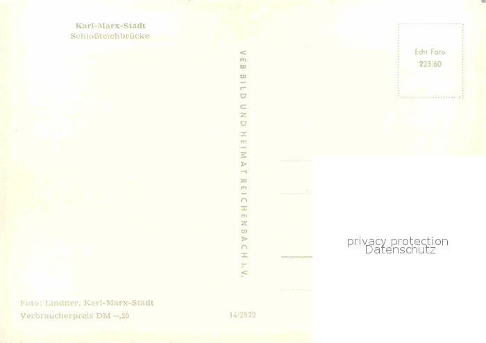 72632583 Karl-Marx-Stadt Schlossteichbruecke postalisch nicht gelaufen Erhaltung siehe scans [FriedD77] KatCode: 11110014161000