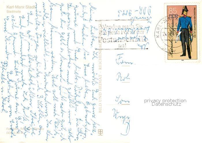 73062381 alte Postkarte Karl-Marx-Stadt Stadthalle postalisch gelaufen Erhaltung siehe scans [KathaD81] KatCode: 11110014161000