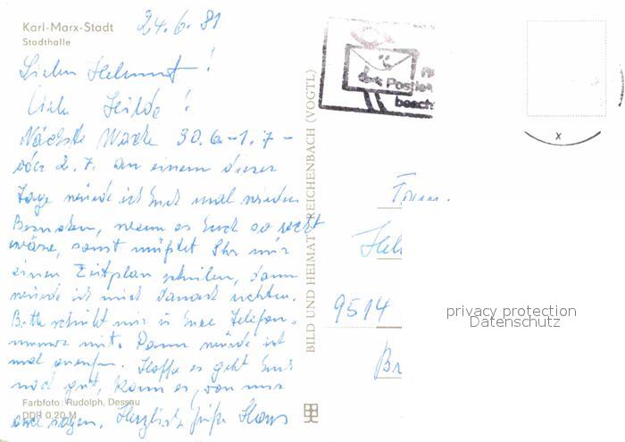 72654975 alte Postkarte Karl-Marx-Stadt Stadthalle postalisch gelaufen Erhaltung siehe scans [LiesaD40] KatCode: 11110014161000