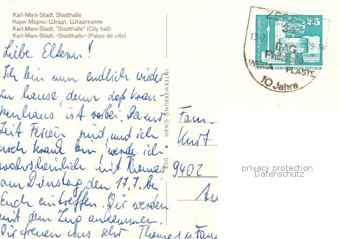 73158183 alte Postkarte Karl-Marx-Stadt Stadthalle postalisch gelaufen Erhaltung siehe scans [WerneD78] KatCode: 11110014161000