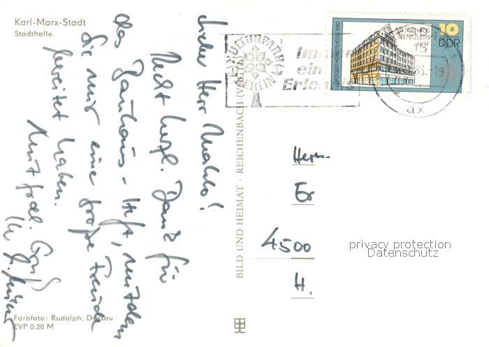 73124986 alte Postkarte Karl-Marx-Stadt Stadthalle postalisch gelaufen Erhaltung siehe scans [KathaD81] KatCode: 11110014161000
