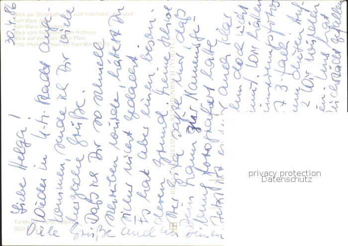 72371989 Karl-Marx-Stadt Stadthalle Karl-Marx Monument Rosenhof Rathaus Karl-Marx Platz Fritz Heckert Haus postalisch nicht gelaufen Erhaltung siehe scans KatCode: 11110014161000
