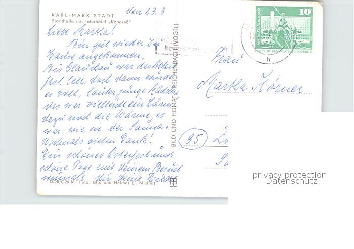 alte Postkarte Karl-Marx-Stadt Stadthalle mit Interhotel Kongress postalisch gelaufen Erhaltung siehe scans
