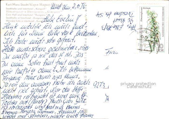 72383113 alte Postkarte Karl-Marx-Stadt Stadthalle und Interhotel Kongress postalisch gelaufen Erhaltung siehe scans KatCode: 11110014161000