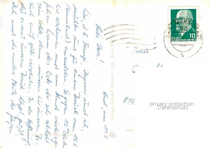 72730416 alte Postkarte Karl-Marx-Stadt Strasse der Nationen Industrie und Handelskammer Interhotel Moskau Kirche Hochhaeuser Brunnen postalisch gelaufen Erhaltung siehe scans [FriedD77] KatCode: 11110014161000
