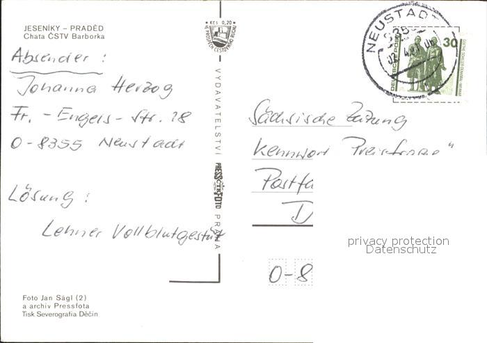 old postcard Karlova Studanka Chata CSTV Barborka Jeseniky postalisch gelaufen Erhaltung siehe scans