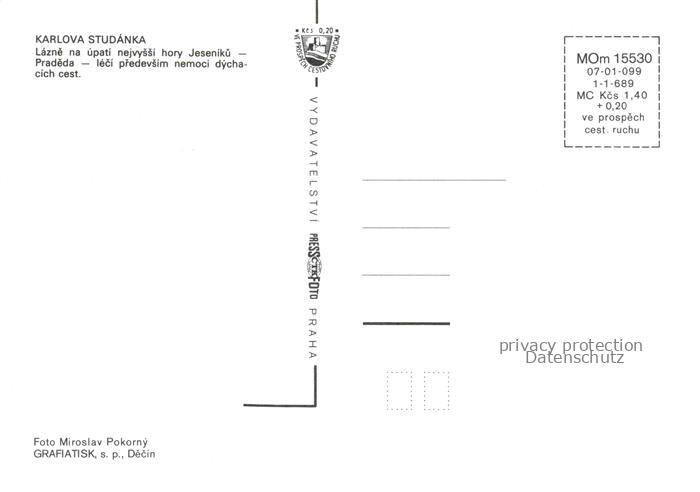 74084787 Karlova Studanka Karlsbrunn Schlesien CZ Lazne na upati nejvyssi hory Jesenikue Pradeda leci predevlim namoci dychacich cest postalisch nicht gelaufen Erhaltung siehe scans [WerneD78] KatCode: 11520