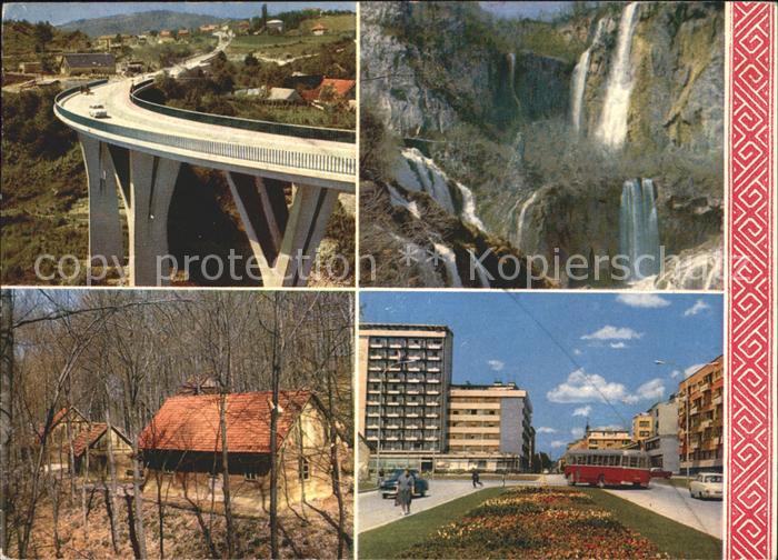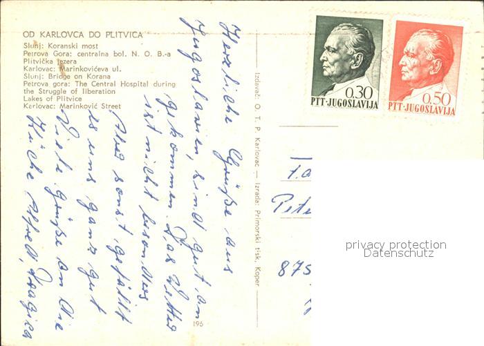 old postcard Karlovac Marinkovic Street Slunj Bridge on Korana Petrova gora Central Hospital Lakes of Plitvice postalisch gelaufen Erhaltung siehe scans