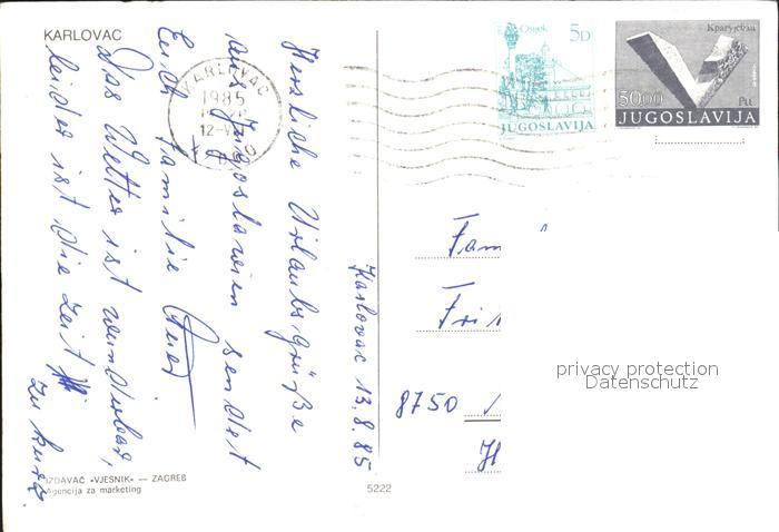 old postcard Karlovac postalisch gelaufen Erhaltung siehe scans