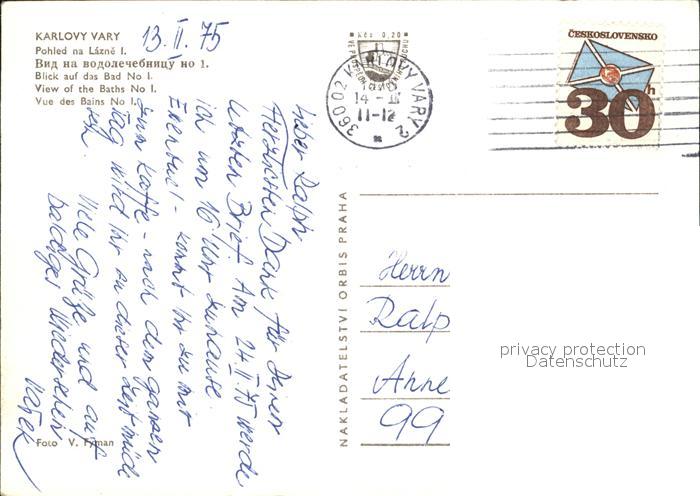 old postcard Karlovy Vary Bad No. 1 postalisch gelaufen Erhaltung siehe scans