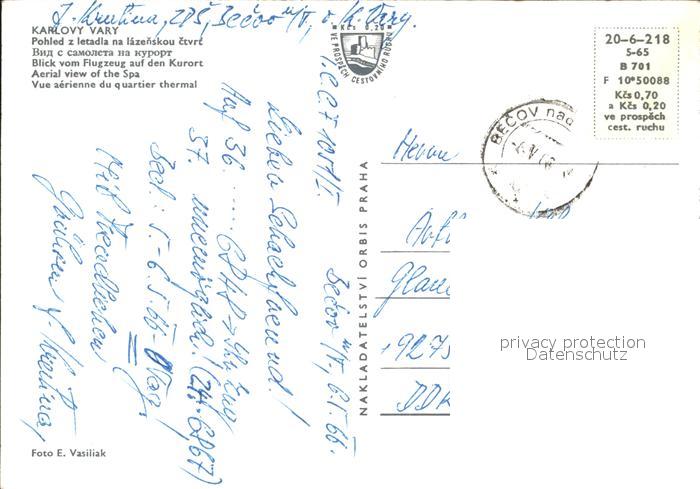old postcard Karlovy Vary Fliegeraufnahme postalisch gelaufen Erhaltung siehe scans