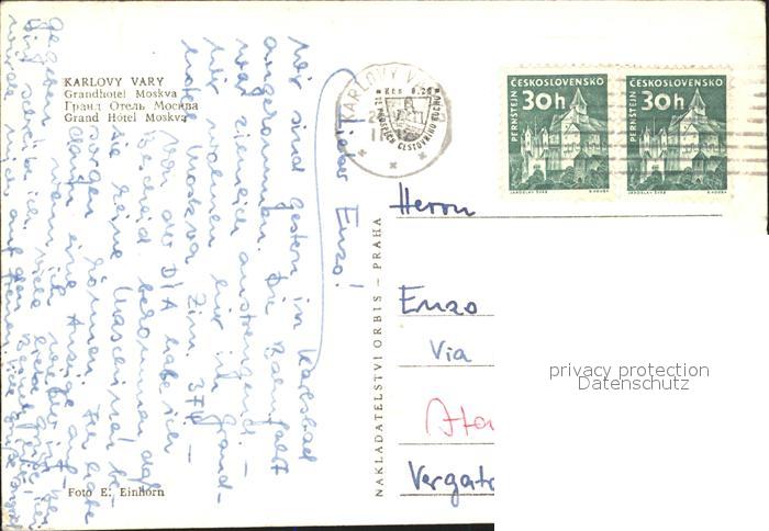 old postcard Karlovy Vary Grandhotel Moskva postalisch gelaufen Erhaltung siehe scans