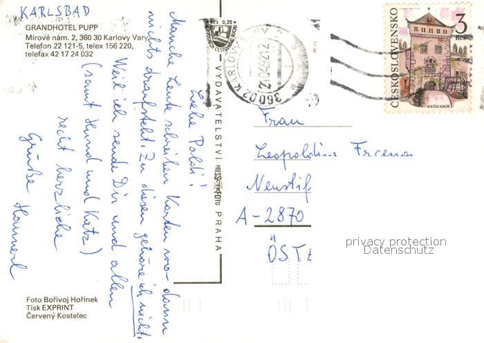 old postcard Karlovy Vary Grandhotel Pupp postalisch gelaufen Erhaltung siehe scans [KathaD81]