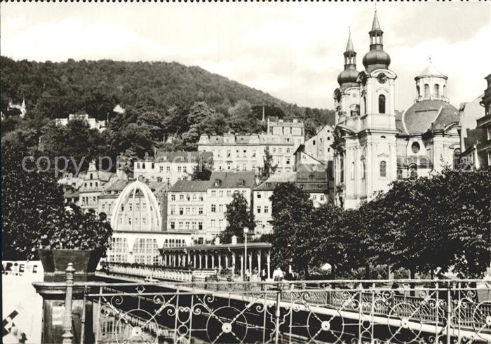Karlovy Vary Grosser Sprudel Kirche postalisch nicht gelaufen Erhaltung siehe scans