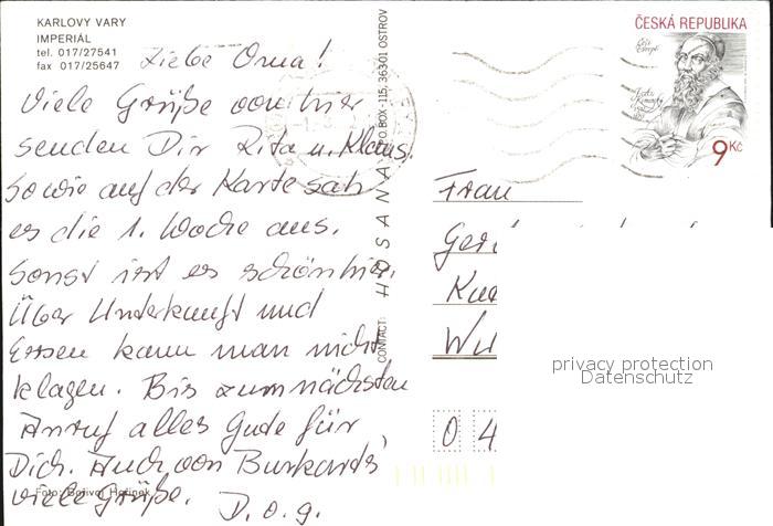old postcard Karlovy Vary Hotel Imperial postalisch gelaufen Erhaltung siehe scans