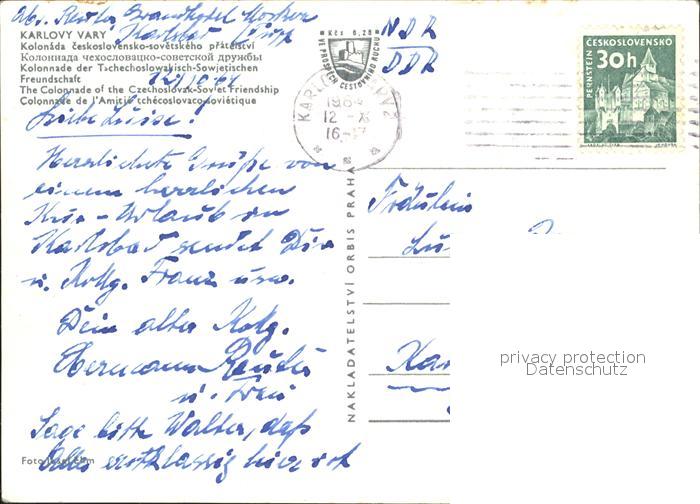 old postcard Karlovy Vary Kolonaden postalisch gelaufen Erhaltung siehe scans