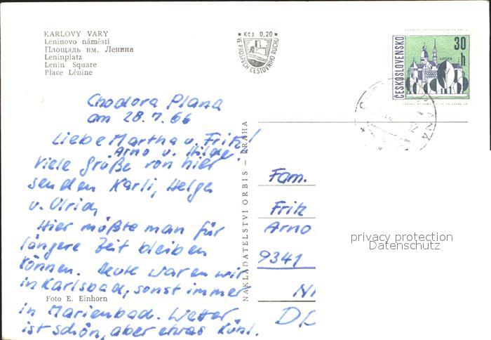 old postcard Karlovy Vary Leninplatz postalisch gelaufen Erhaltung siehe scans