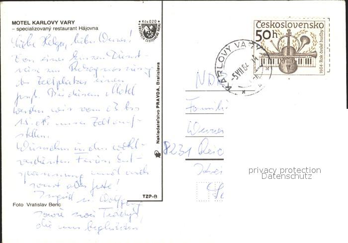old postcard Karlovy Vary Motel postalisch gelaufen Erhaltung siehe scans